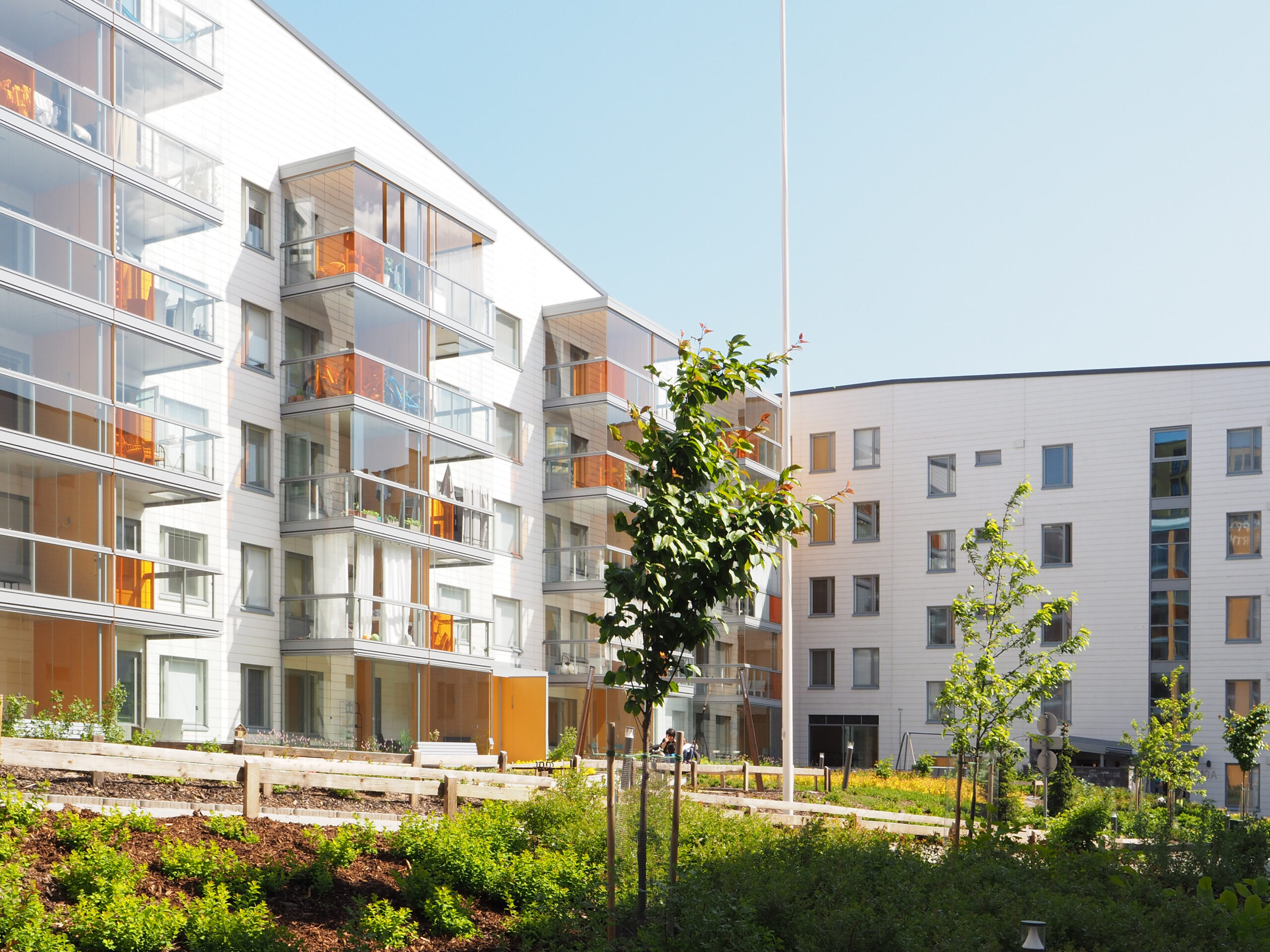 Viidestä asunto-osakeyhtiöstä ja parkkihallista koostuva kortteli Vuosaaren Kahvikorttelin alueella.
